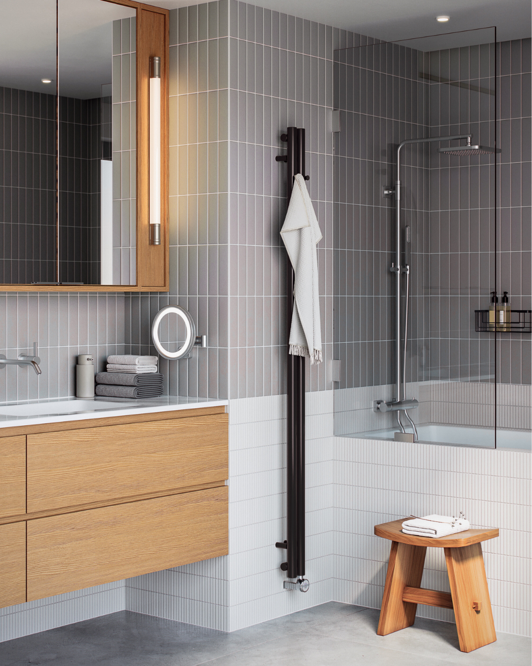 Доступна у різних варіантах які відрізняються по висоті і ширині, різних типах підключення, що дозволяє легко пристосовувати її для будь-якого типу установки: водяної, електричної, комбінованої. Ефективне рішення для будь-якої ванної кімнати.